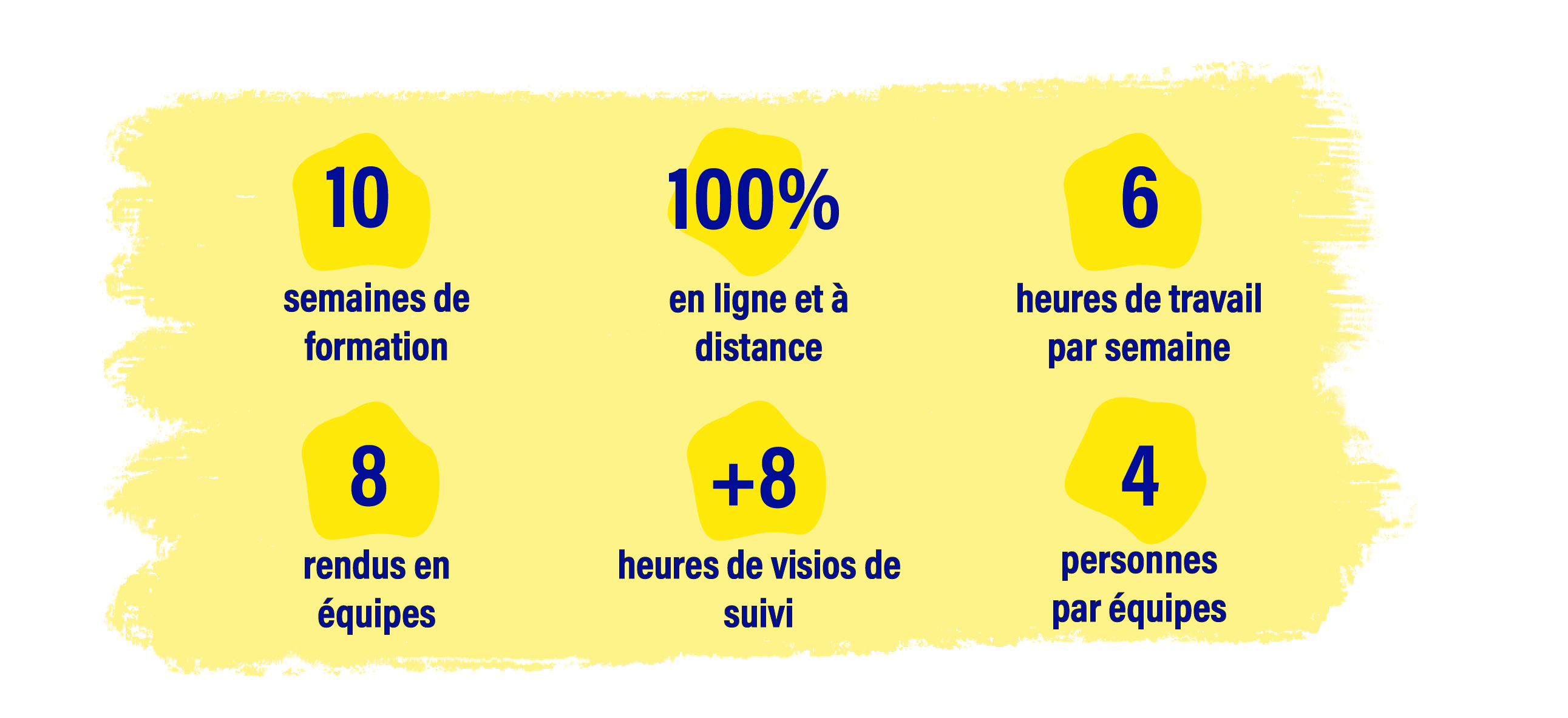 Bien que cette formation en ligne dure approximativement 10 semaines, plusieurs sessions sont ouvertes tout au long de l’année. Vous pourrez donc choisir de vous inscrire à une formation dont les cours correspondent au mieux à votre calendrier.
